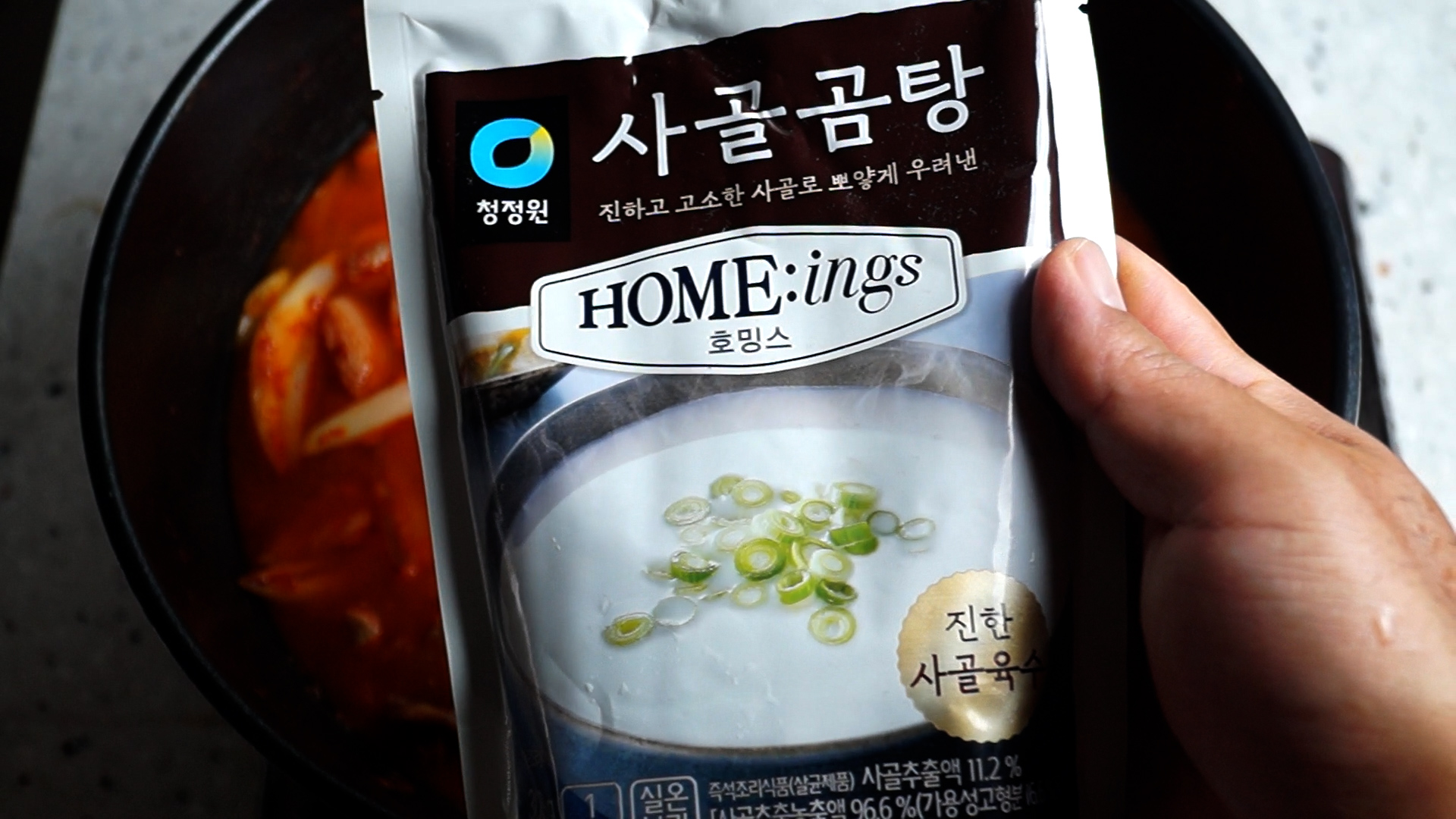 11. 건더기 없이 국물만 있는 시판 사골곰탕 1팩을 준비하세요.