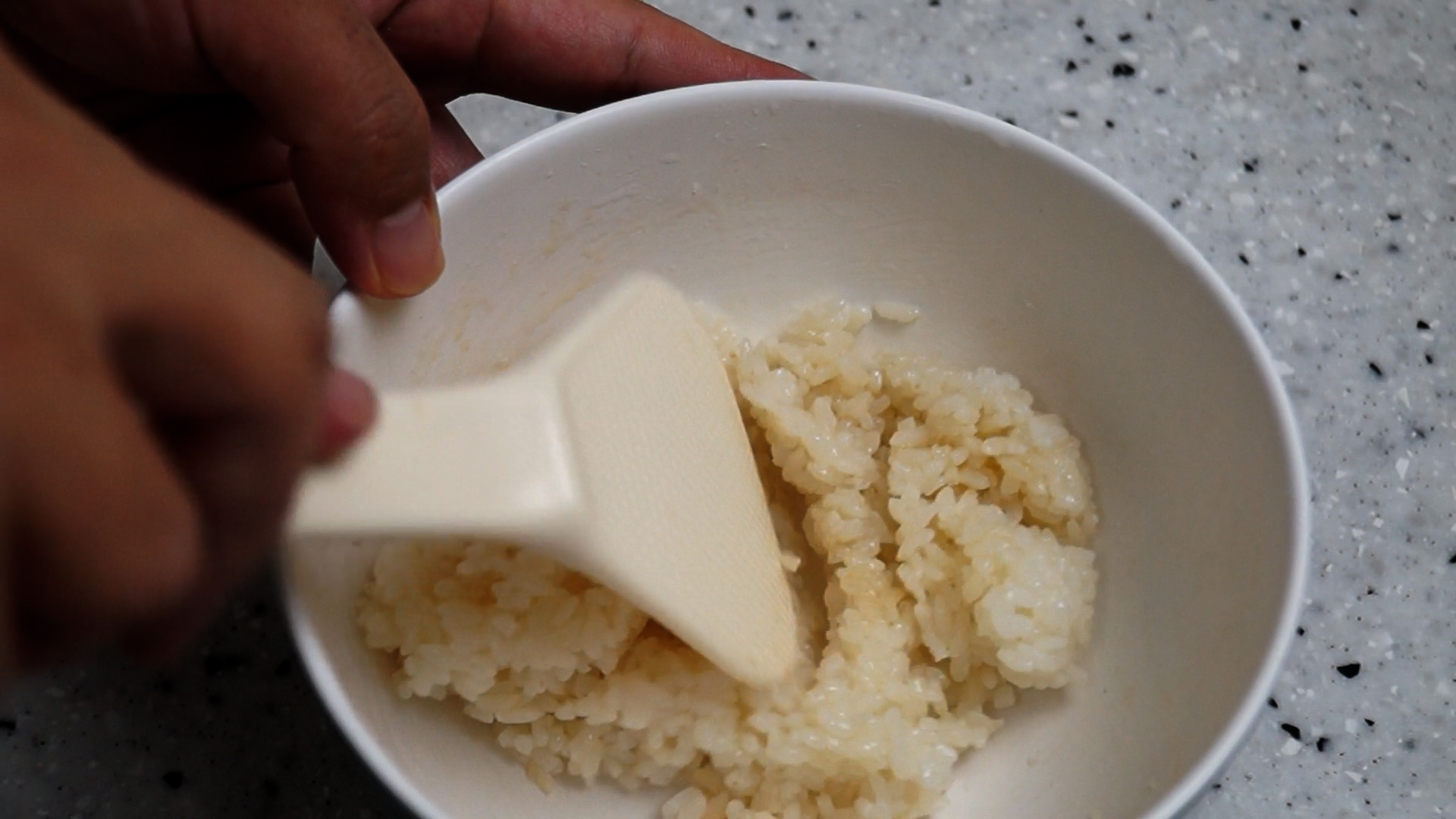 15. 밥알을 주걱 넓은 면으로 꾹꾹 눌러섞으면 밥알이 뭉그러지니 이렇게 주걱 날을 세워서 골고루 섞이도록 해주시는게 좋아요~