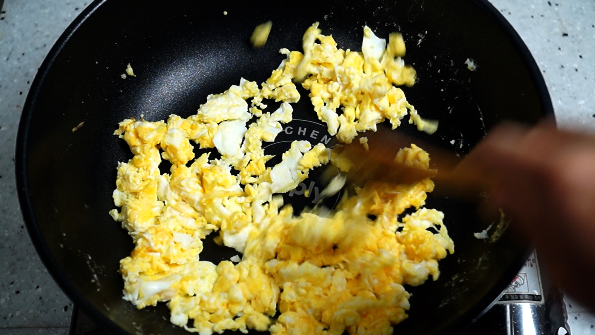 11. 계란은 골고루 흩어가면서 스크램블로 고슬고슬하게 볶아주세요.