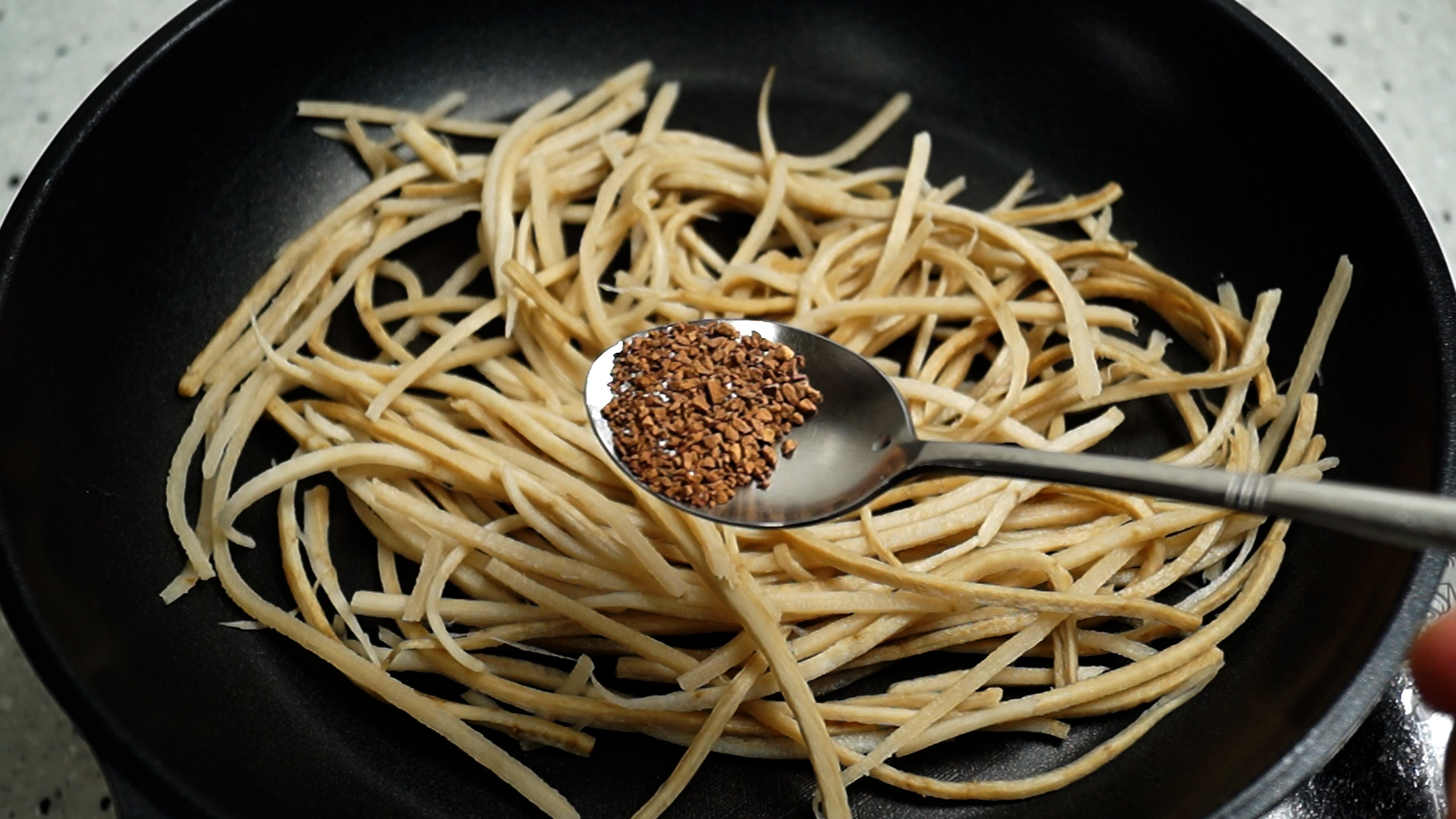 6. 커피가루를 넣어주면 색감이 훨씬 좋아져요~ 없으시면 믹스커피 1봉을 고운 채반에 부어 털어주시면 설탕과 프림은 다 빠져 나가고 굵은 커피가루가 1g 정도 나옵니다^^~ 블랙커피 땡기는데 믹스 밖에 없을때 이렇게 해도 좋아요~