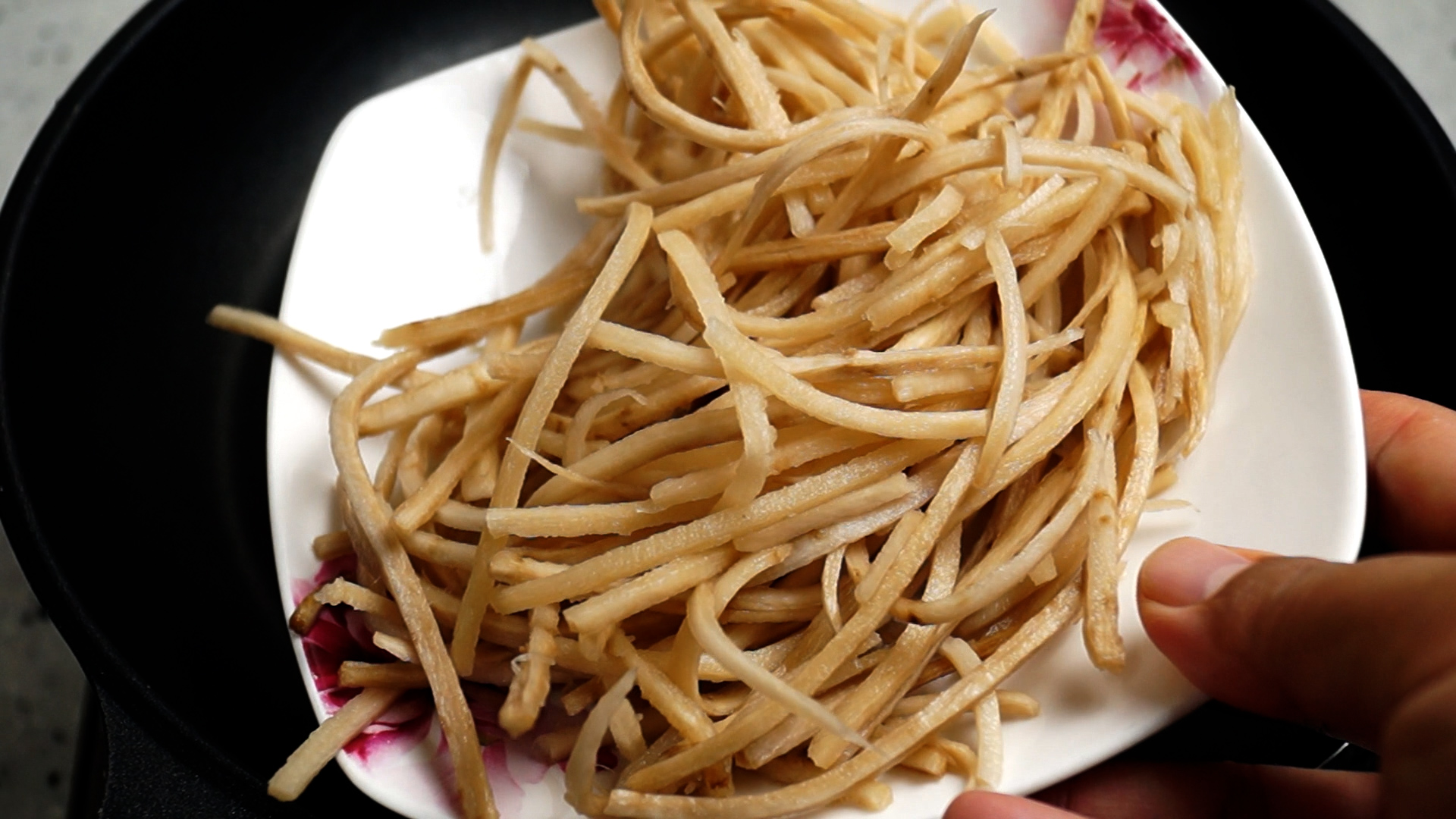 1. 길이로 채썬 우엉 150g을 준비하세요. 색깔이 이상하다고요? 상한거 아니에요~ 우엉은 워낙 갈변이 빨리되서 물에서 빼자마자 이렇게 변합니다^^