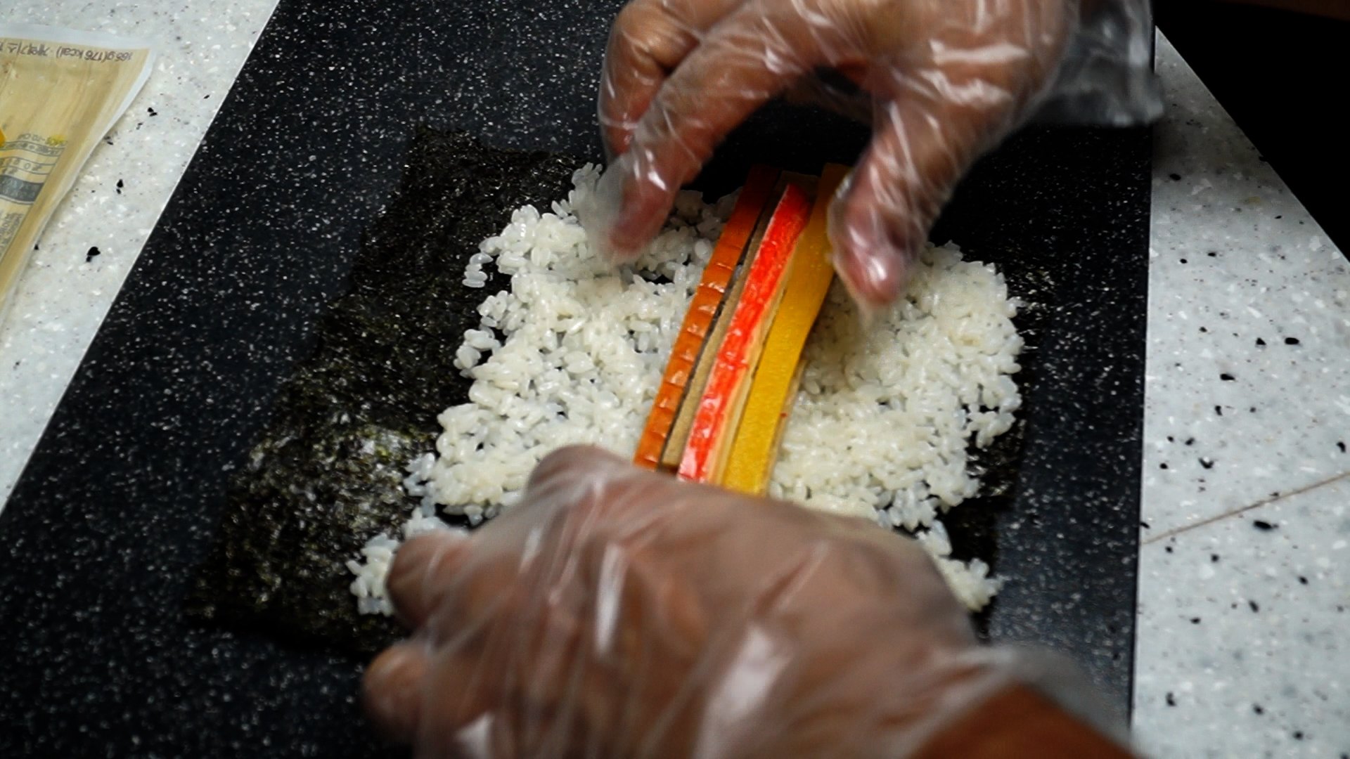 13. 꾹꾹 눌러서 딴딴하게~ 휘리릭 눌러서 말아주세요!