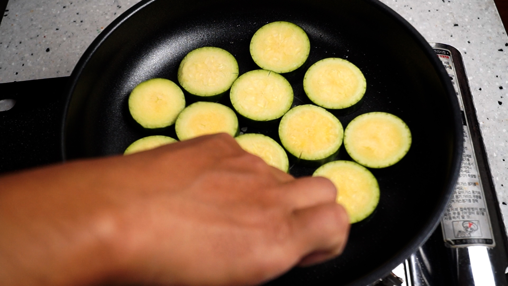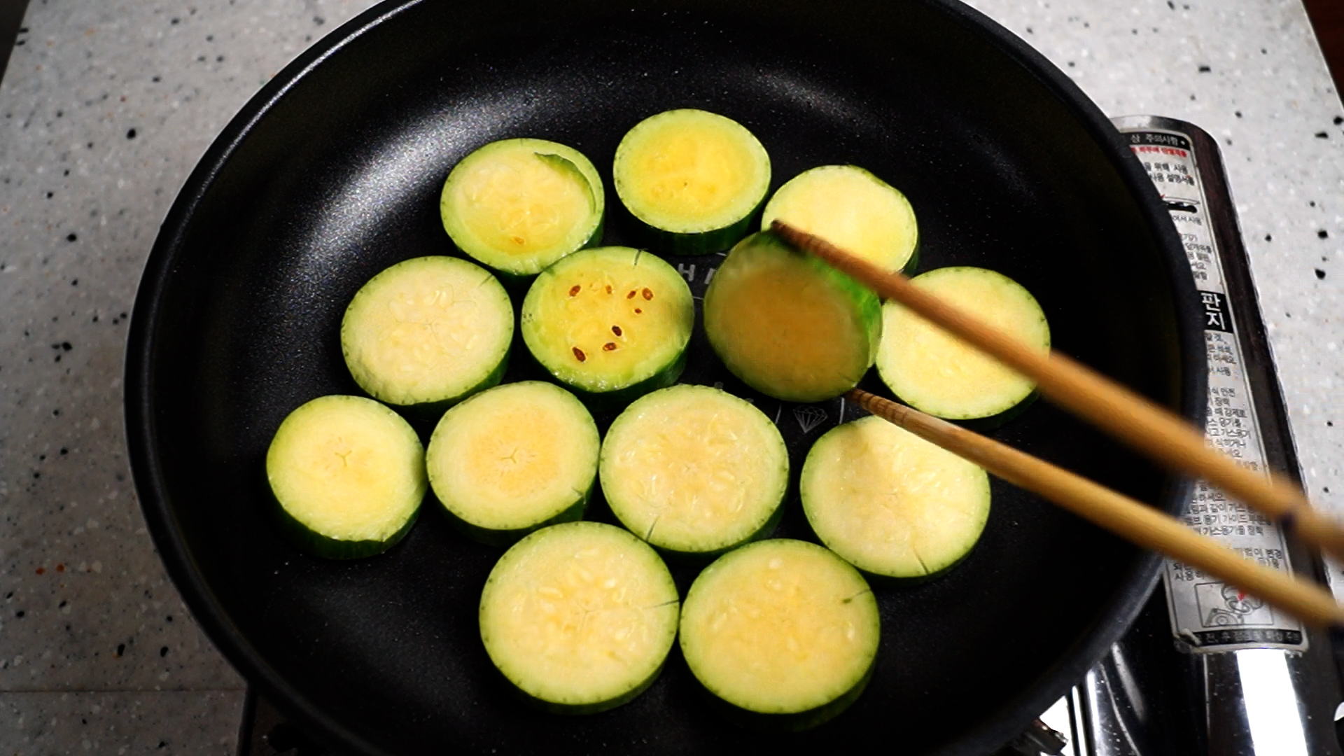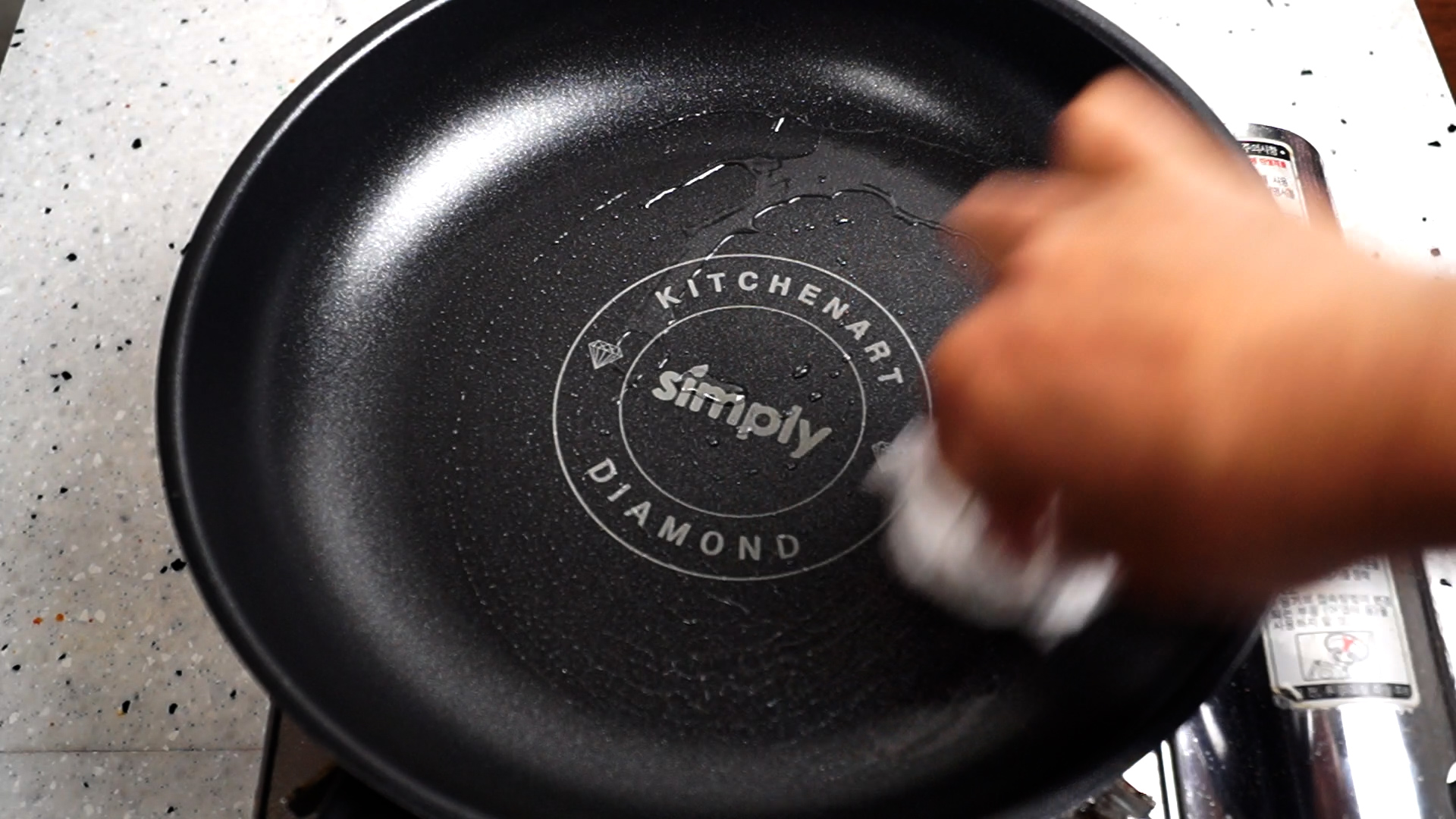 6. 약불에 기름이 달궈지면 키친타월로 닦아 기름이 팬 전체에 살짝 뭍을정도로 닦아주세요. 오일 스프레이를 사용하시면 키친타월 없이 편하게 도포 할수 있습니다.