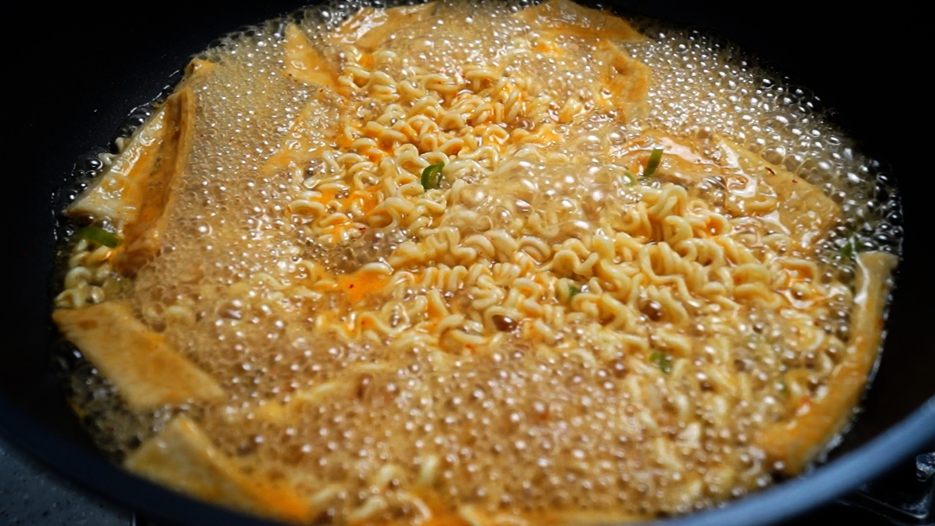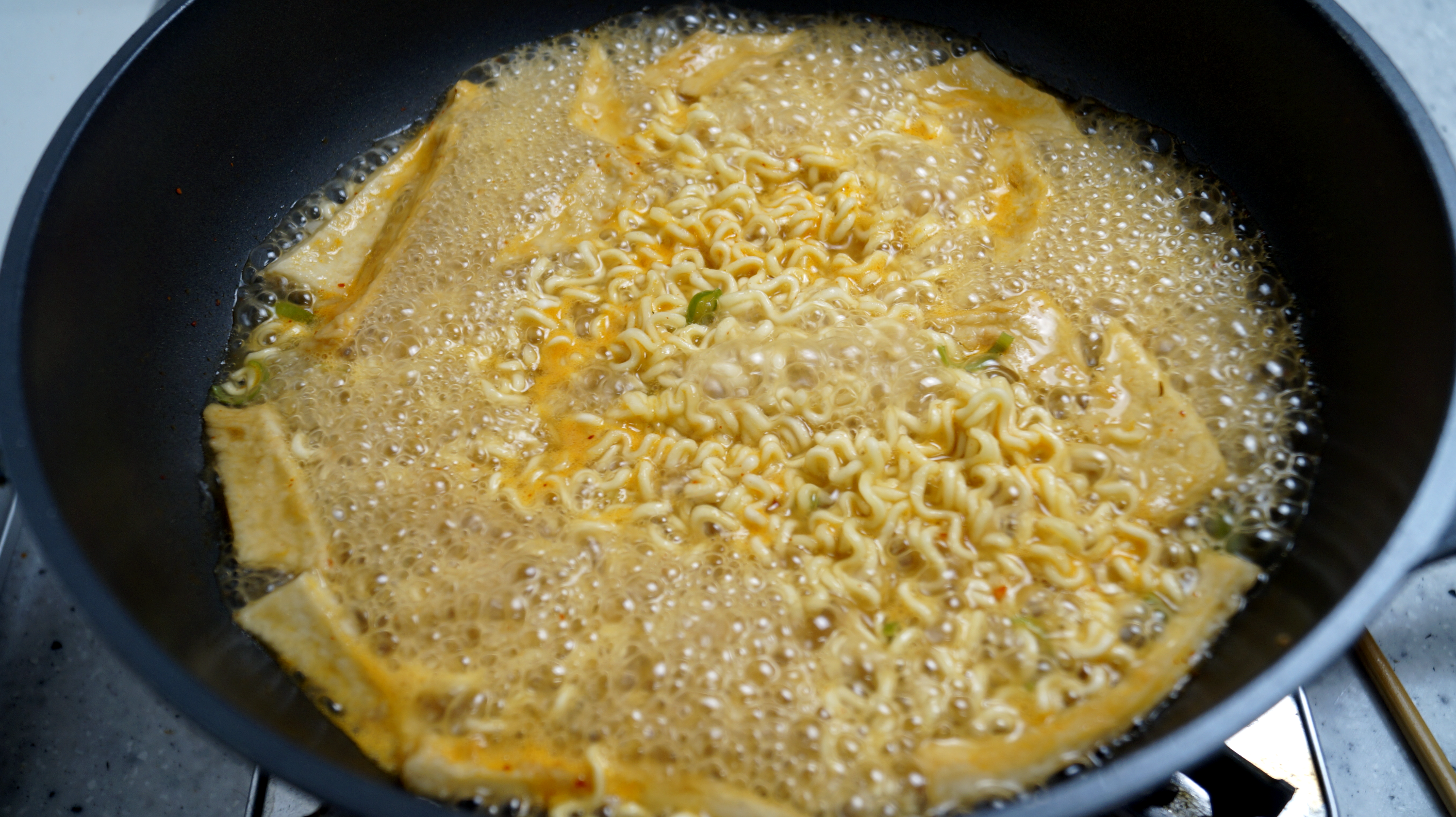 8. 물이 끓기 시작하면 라면사리를 넣어주세요.