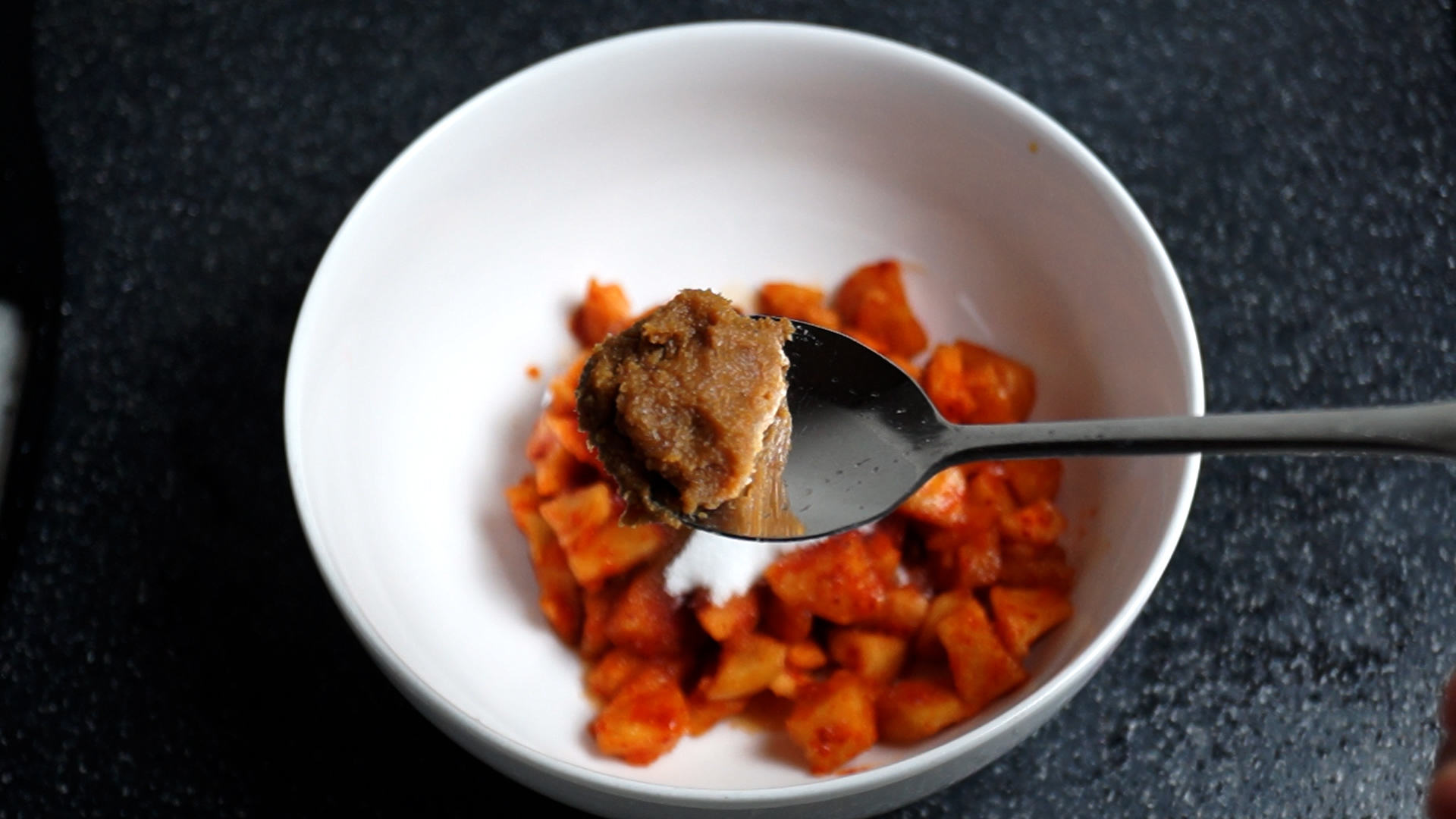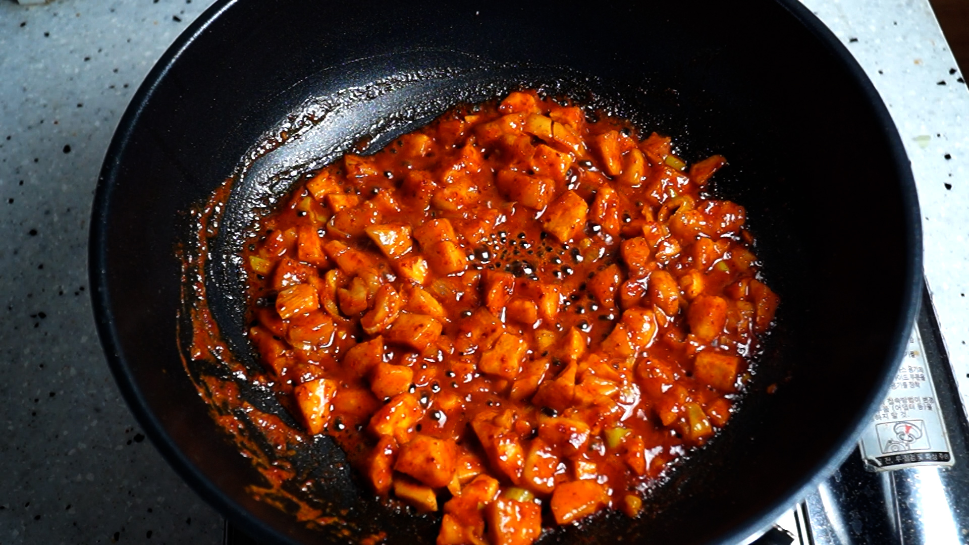 17. 20초후 한번더 골고루 섞은 다음 넓게 펴서 20초간 중불에 가만히 둡니다. 기호에 따라 이걸 1~2차례 더해주시면 더 깊어지는 맛을 느낄수 있습니다!