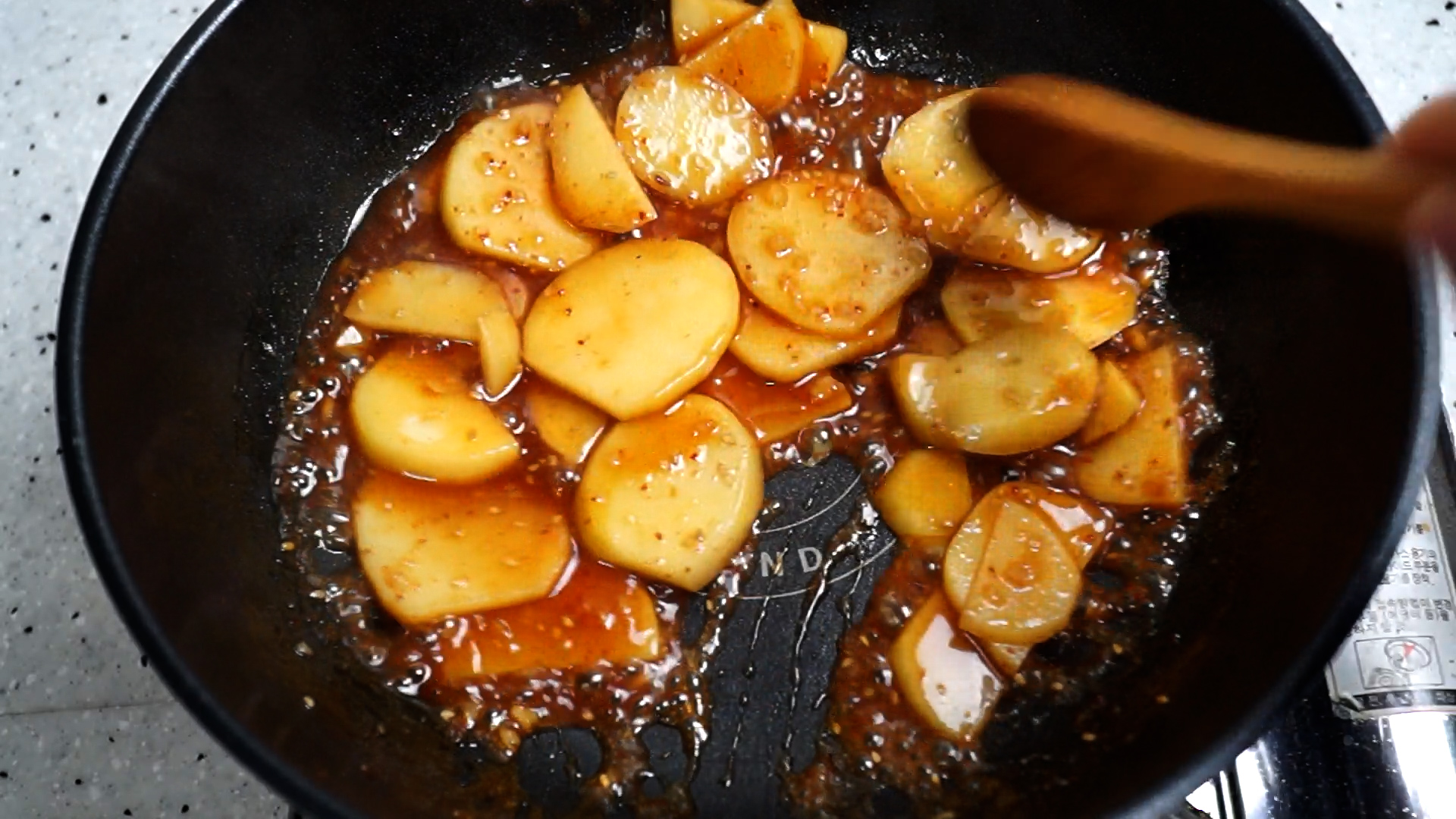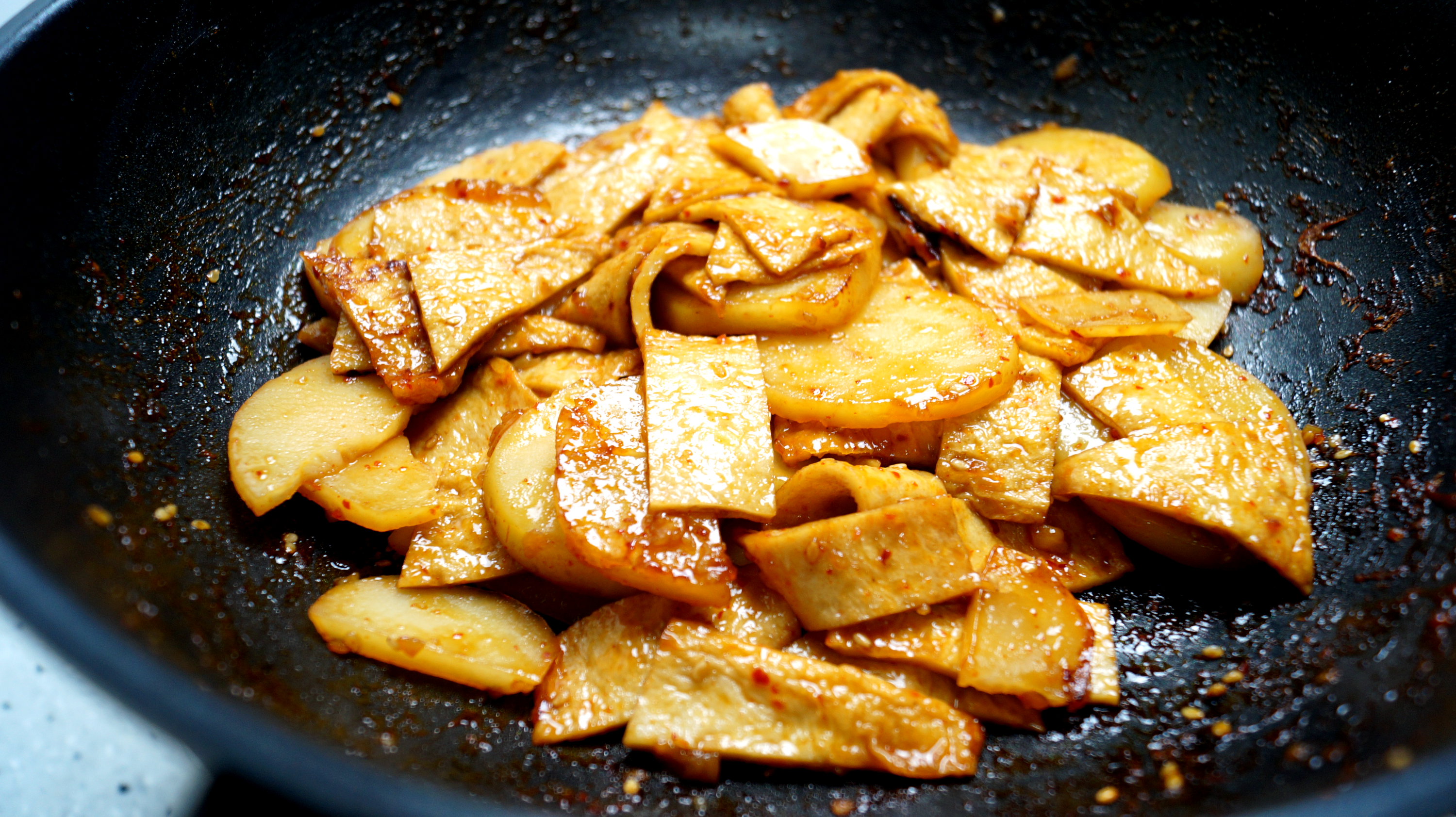 16. 양념이 거의 사라지고 완성하셔도 되지만 볶는 시간을 좀 늘려서 감자전분,물엿,간장이 탈듯말듯한 액기스 처럼 살짝 늘어 붙을때까지 볶아주면 좀더 진한 볶음을 즐길수 있습니다.