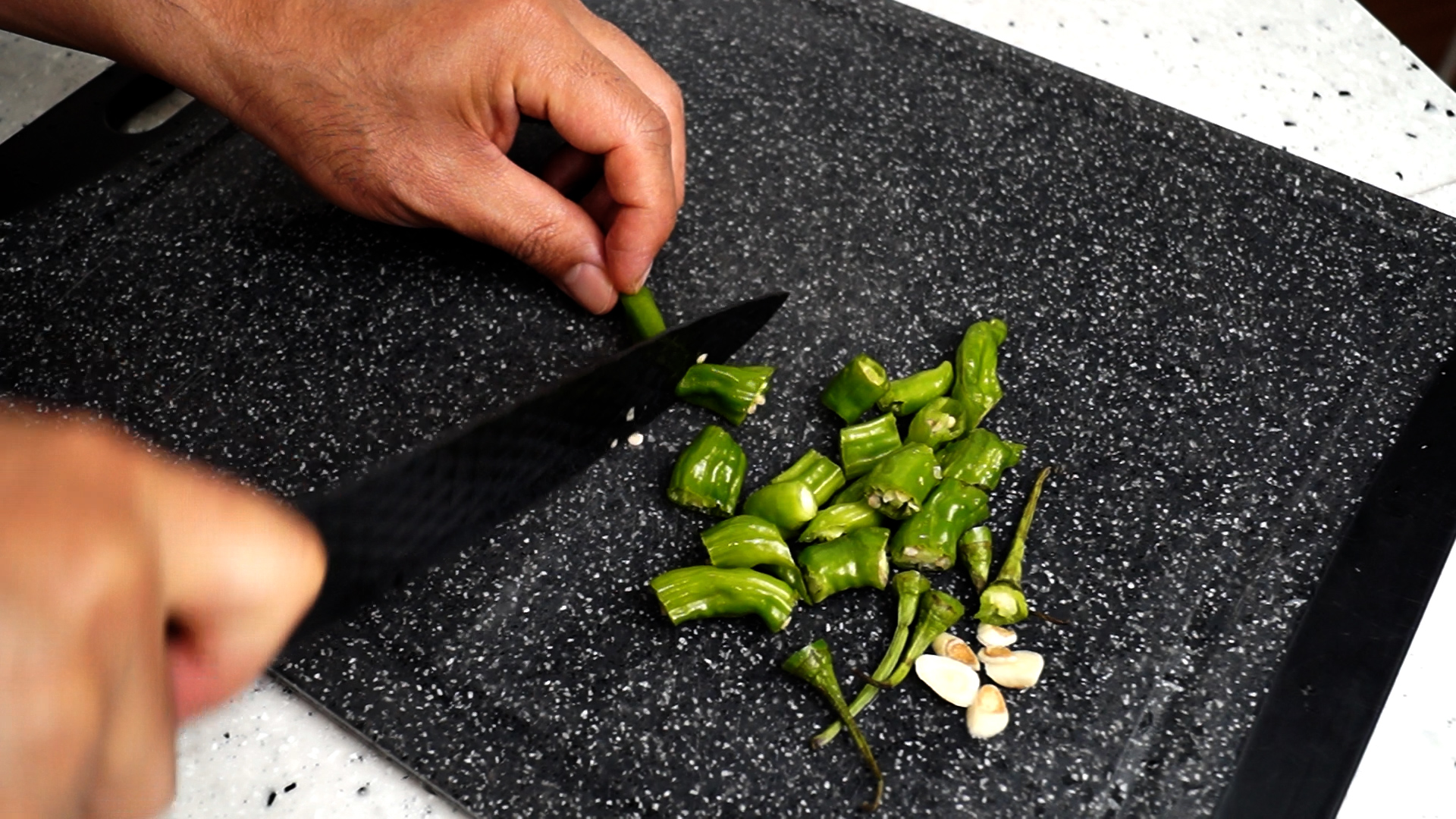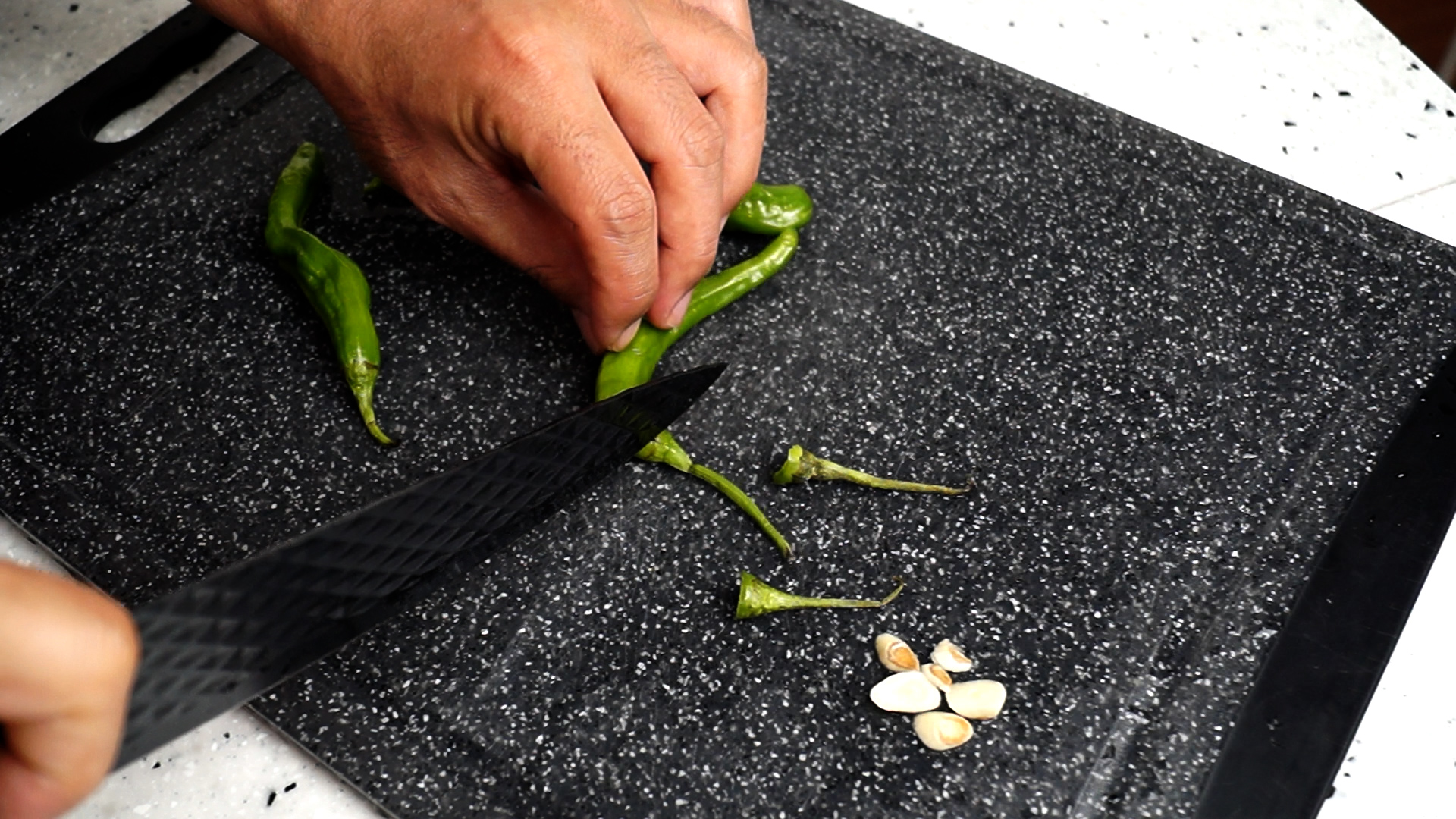 5. 꽈리고추 5개를 씻어서 꼭지를 잘라주세요.