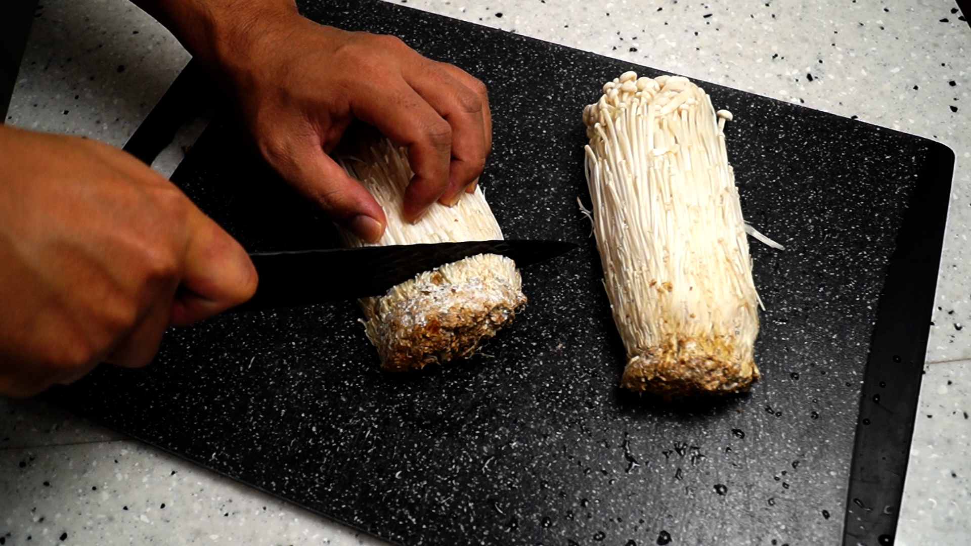 2. 팽이버섯은 봉지채 썰면 더럽다는 소리를 들을수도 있고 잘못해서 먹을수 있는 부분까지 많이 잘리는 경우도 있고 봉지채 자르면 또 음식물 쓰레기 비닐 따로 분리해야하니 그냥 봉지를 벗겨주세요.