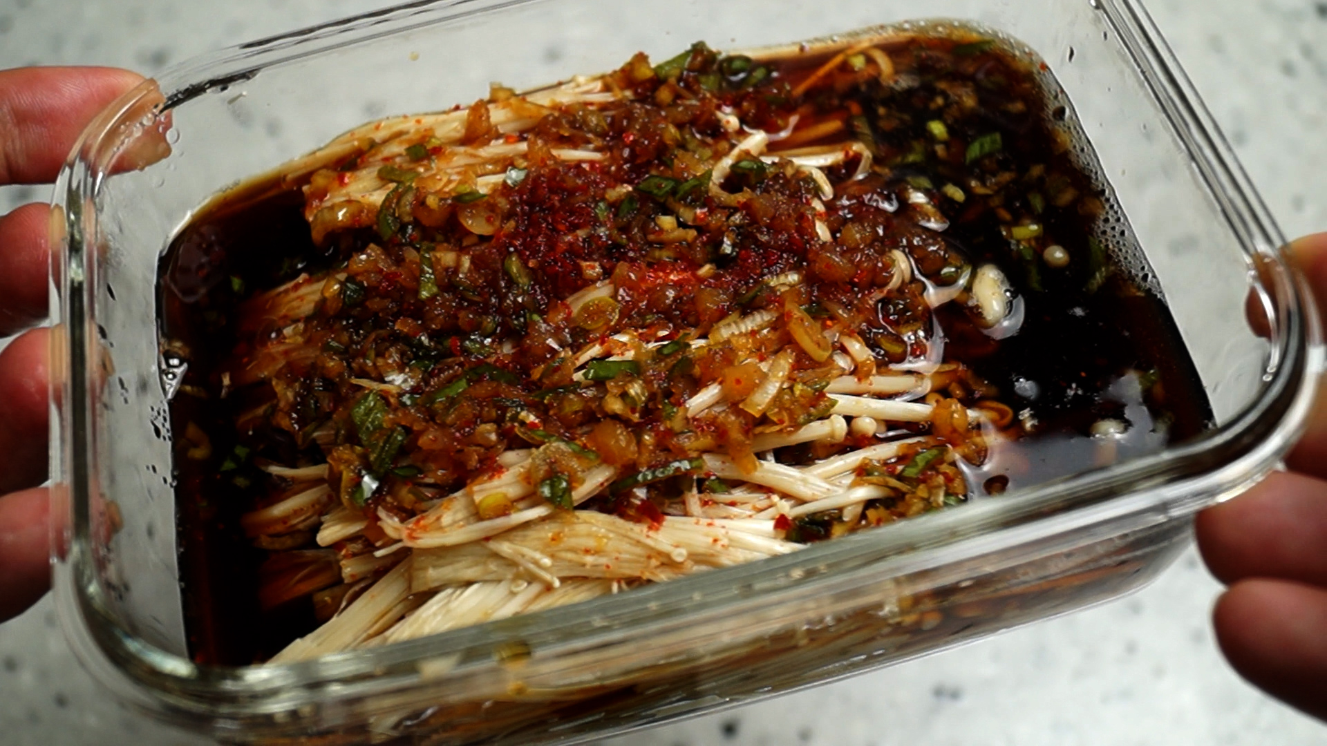 25. 양념에 폭~잠긴 버섯은 뚜껑덮어서 4시간 정도 냉장고에 넣고 맛이 좀 베이게 해주세요.