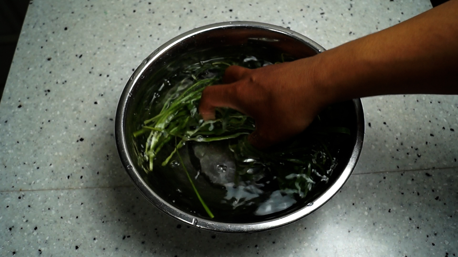 1. 파릇파릇 부추 1줌 50g 을 물에 폭 ~ 담궈 10분 정도 불린 다음 2~3차례 가볍게 씻어주세요. 부추는 박박 문지르면 쓴맛과 풋내가 날수 있으니 최대한 살살 다뤄주세요~