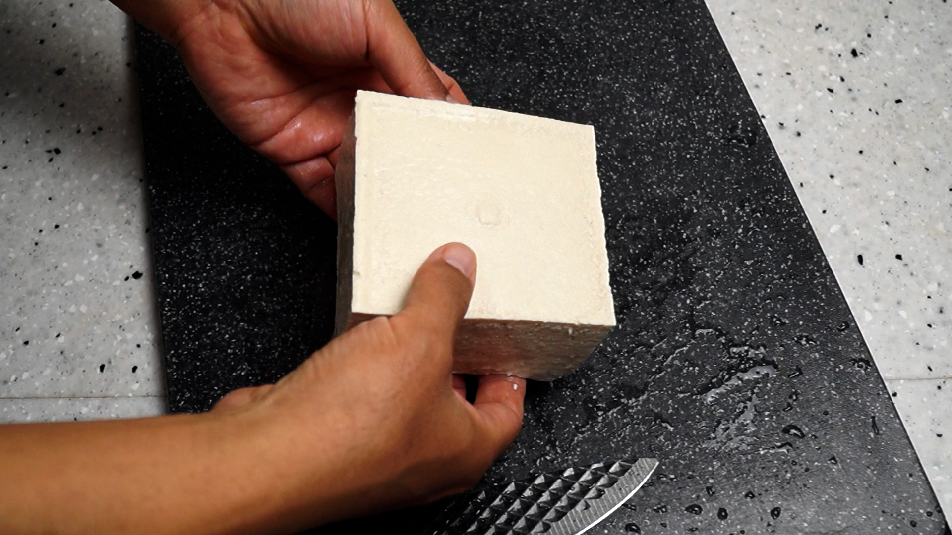 4. 마트에서 제일 단단한!! 두부 1모를 사서 준비하세요. 전 찌개에도 찌개용 두부 안쓰고 딴딴한 두부를 씁니다! 그 이유는 두부를 부드럽게 한다는건 그만큼 콩함량을 줄이고 물이 더 들어 갔다는 말과 같아서 찌개용 두부를 쓰면 항상 국물이 너무 싱거워져 추가간을 하게 되더라고요! 그래서 저는 콩함량도 높도 끓여도 잘 안부서지고 단단한 부침용 두부를 씁니다!