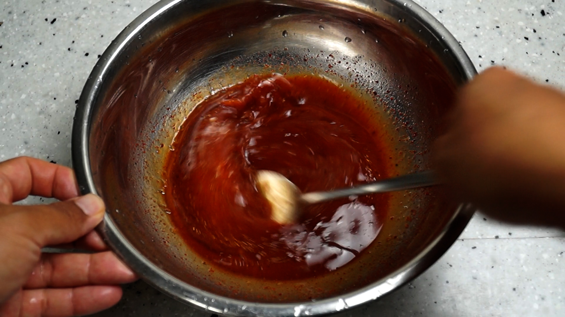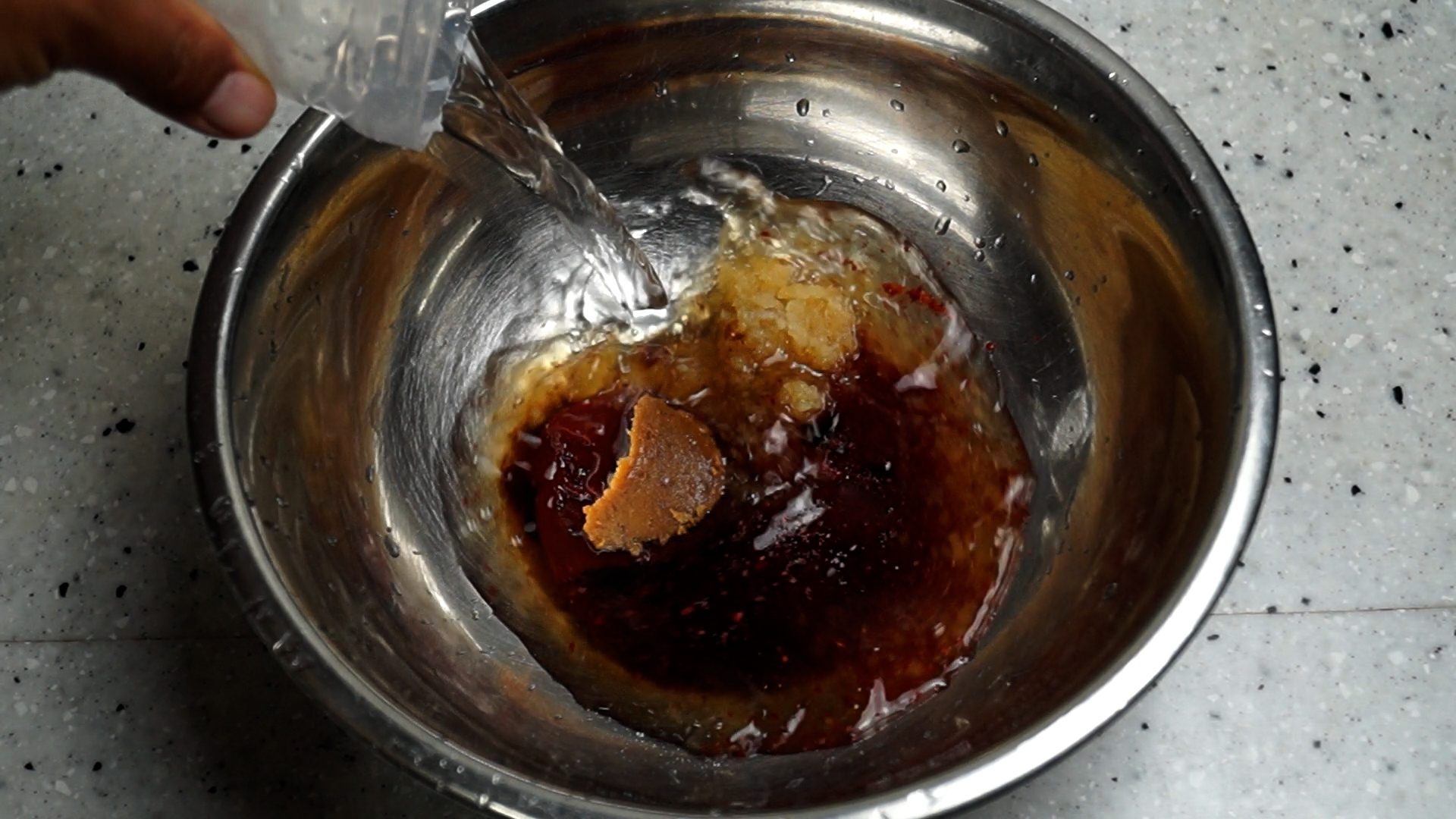 17. 고추장 된장이 완전히 풀리게 섞어주세요.