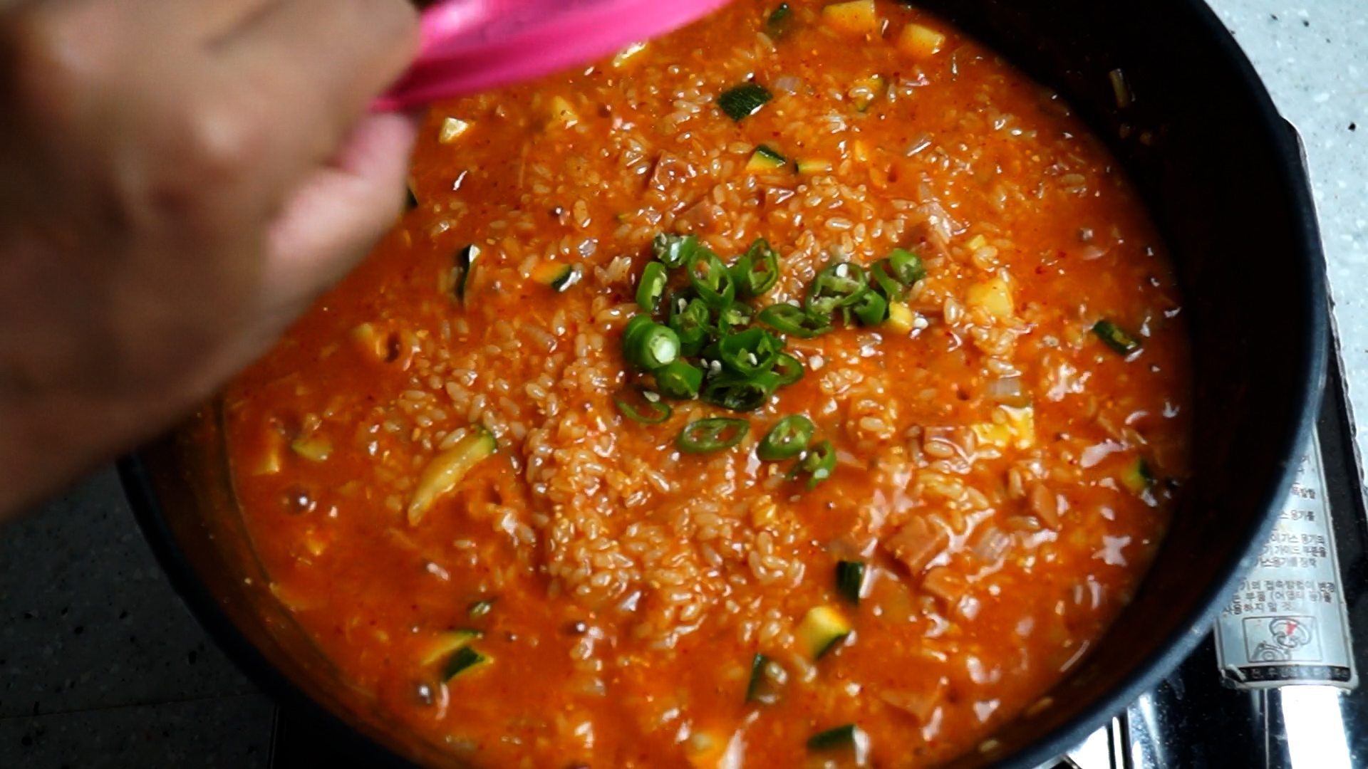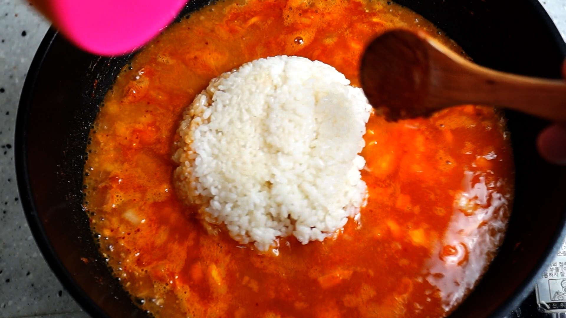 21. 국물이 끓기 시작하면 밥 2공기 400g 을 넣어주세요.
