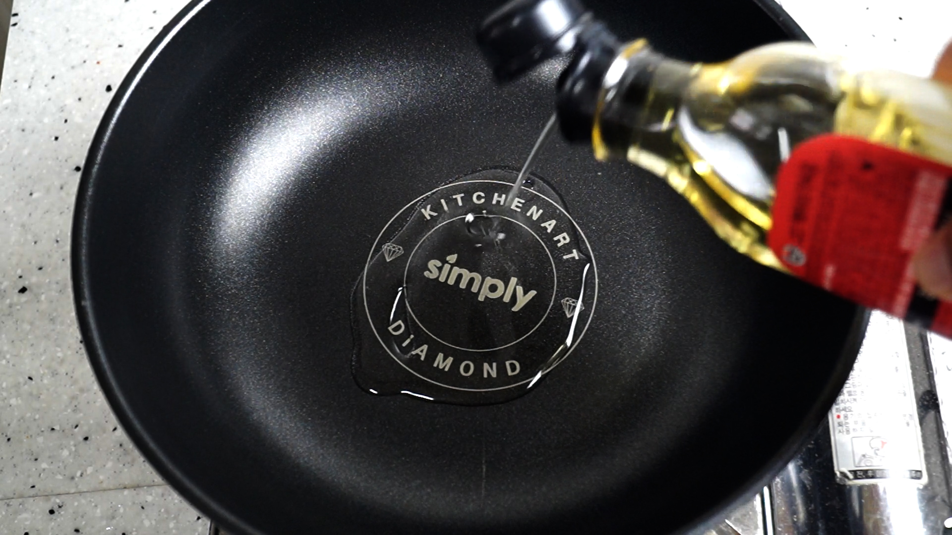 9. 웍이나 22cm 정도 팬을 준비해서 식용유 2스푼 10g 을 부어주세요.