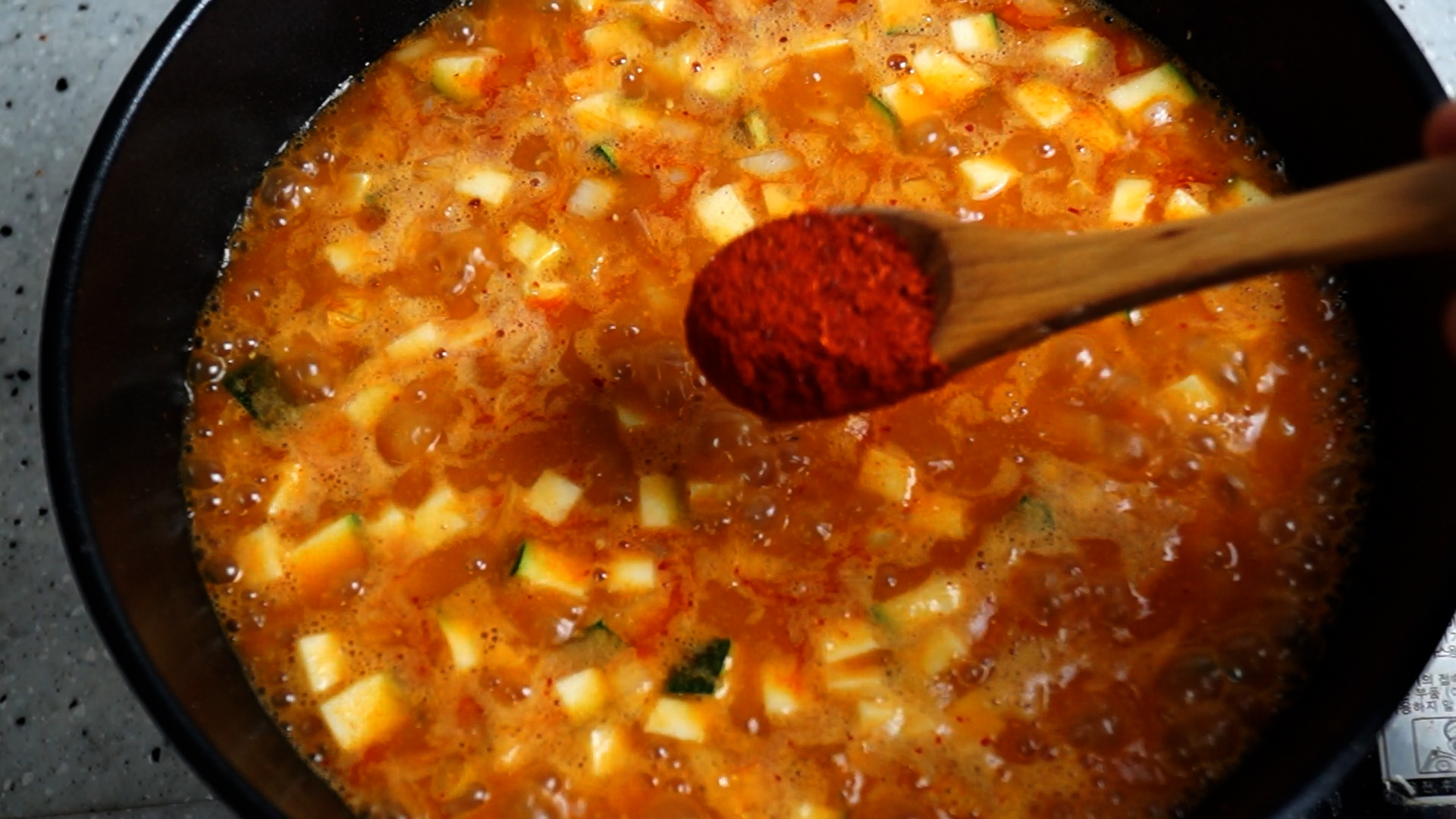 23. 색감 올려줄 고추가루 1스푼 7g 은 지금 넣어주세요.